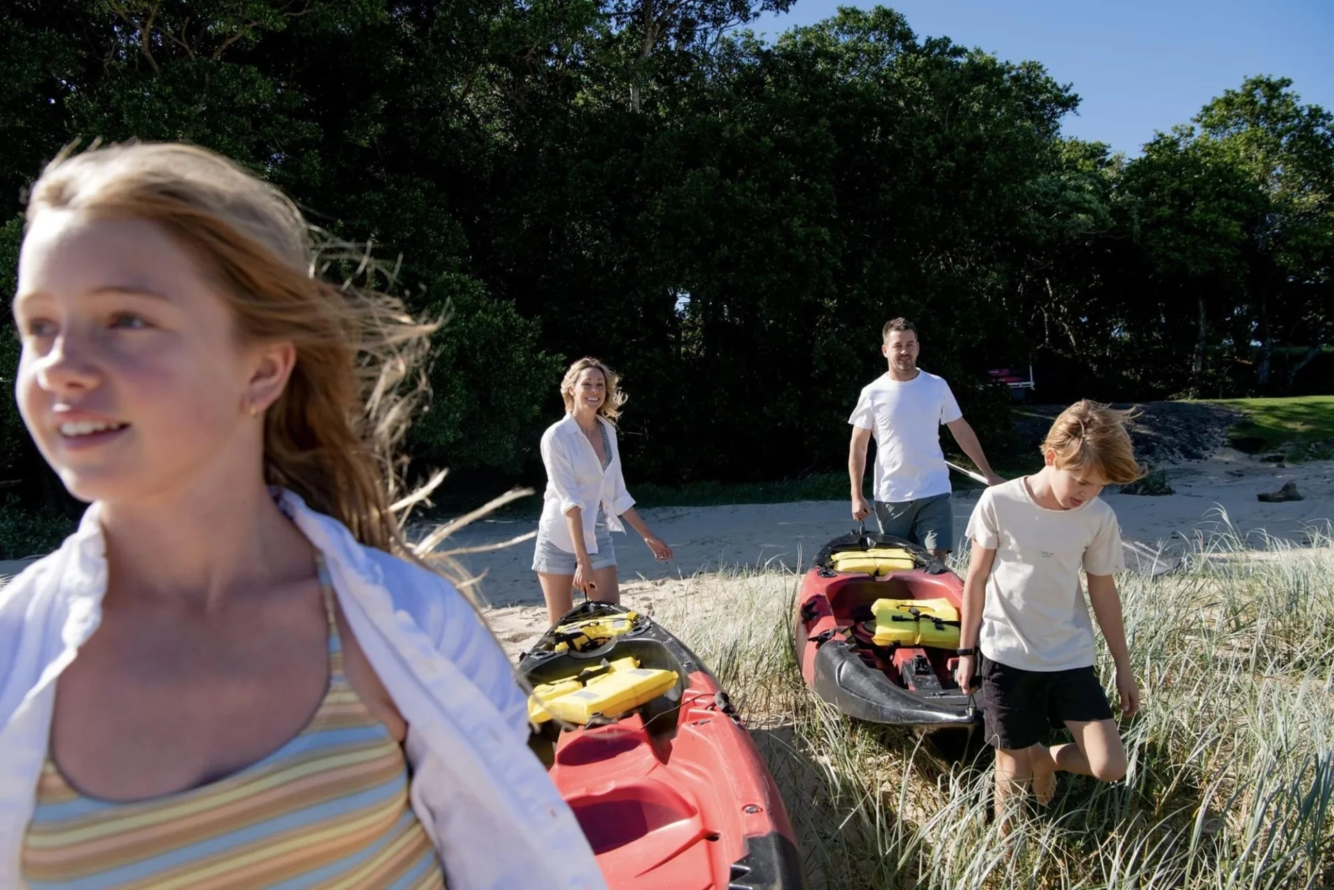 If you prefer to be on the water, Shaws Bay is the spot for a peaceful paddle. Hire a kayak or stand-up paddleboard and glide across the calm lagoon, keeping an eye out for fish darting below and pelicans overhead. The bay is also home to a relaxed foreshore trail — great for walking, cycling, or simply soaking up the coastal scenery.